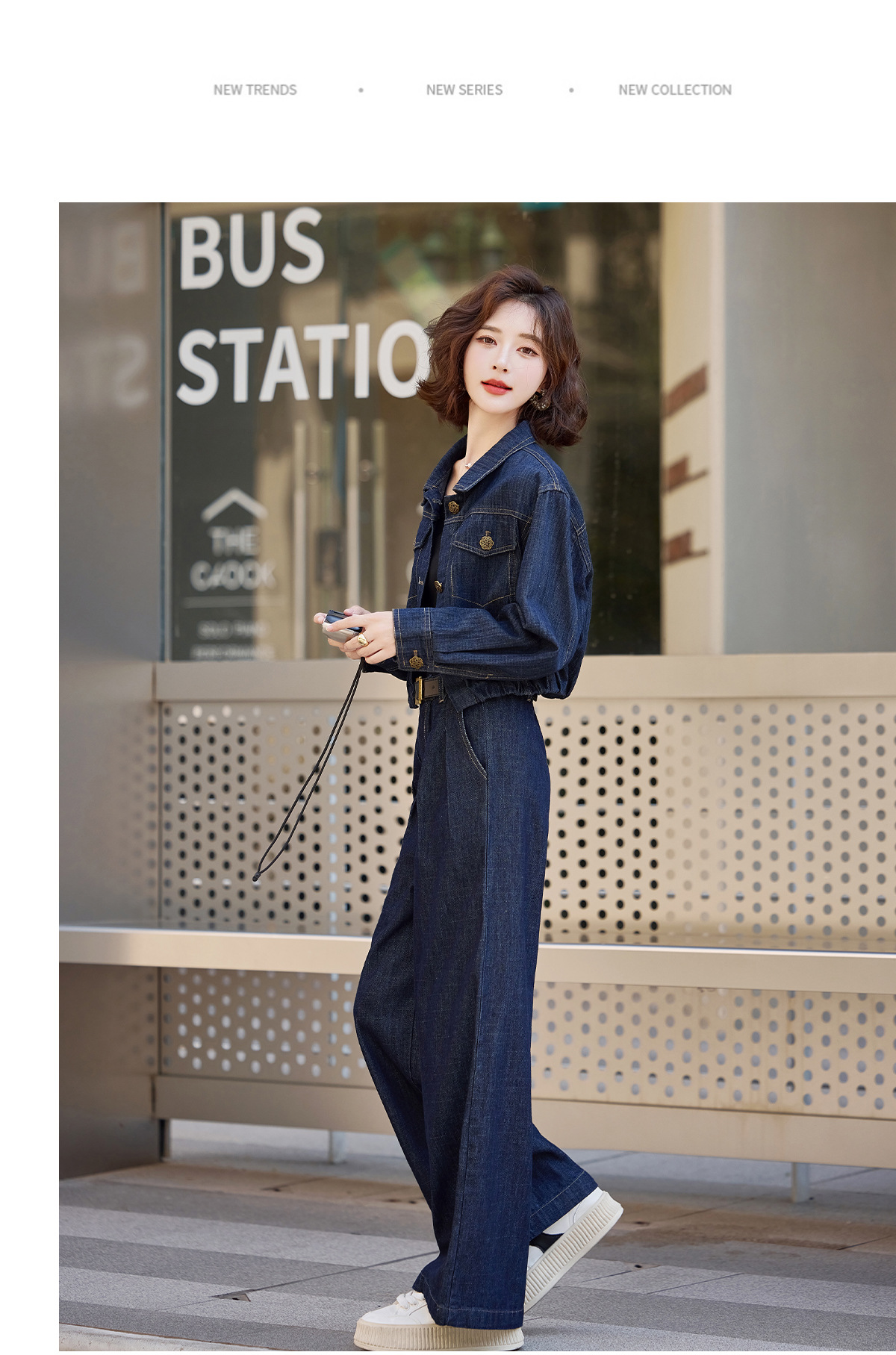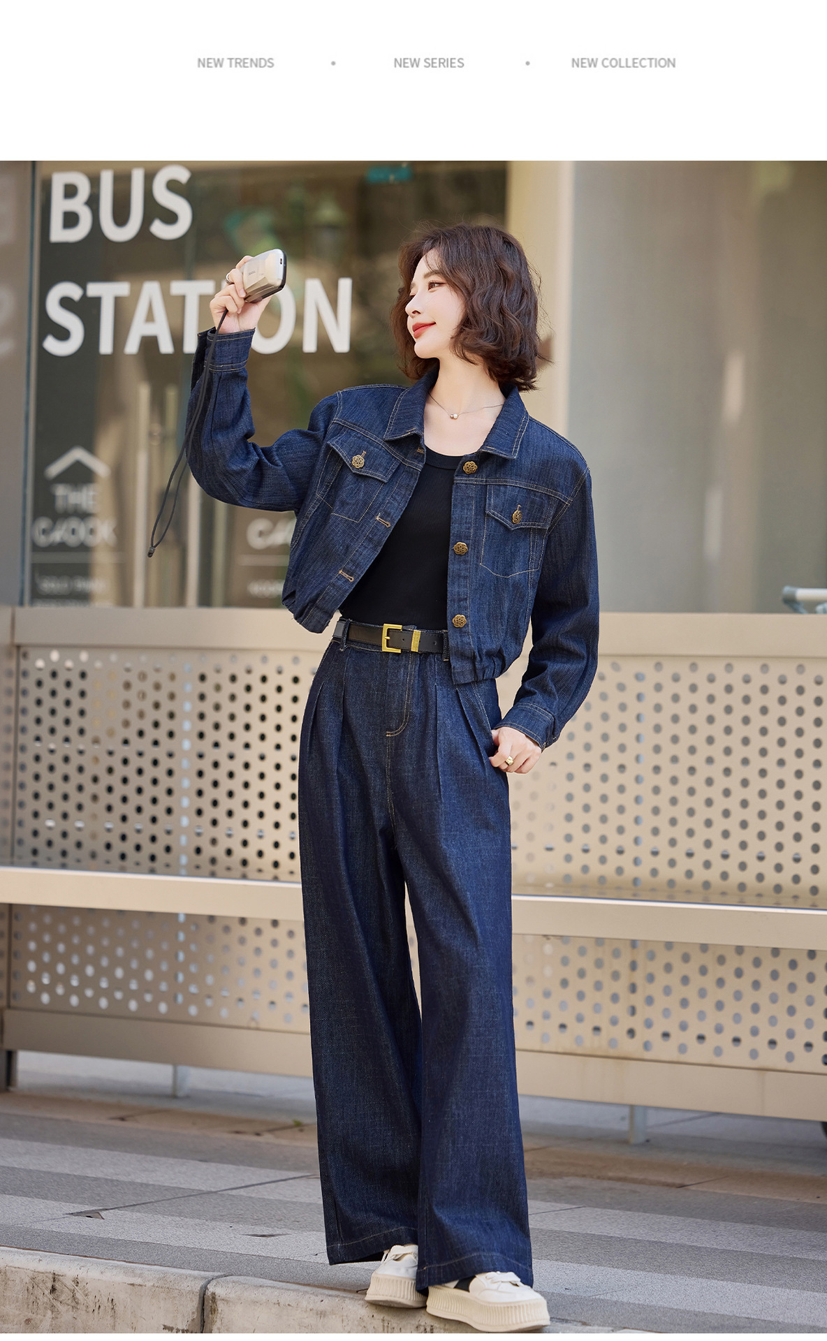 Elegant Denim Jacket & Wide-Leg Pants Two-Piece Suit